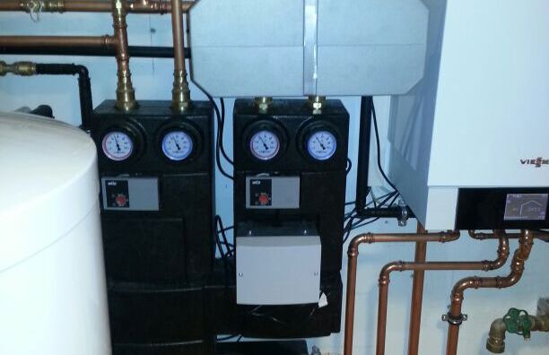 Einbau eines Gasbrennwertgerätes, Fabrikat Viessmann, mit hydraulischer Weiche und 2 Mischkreisen