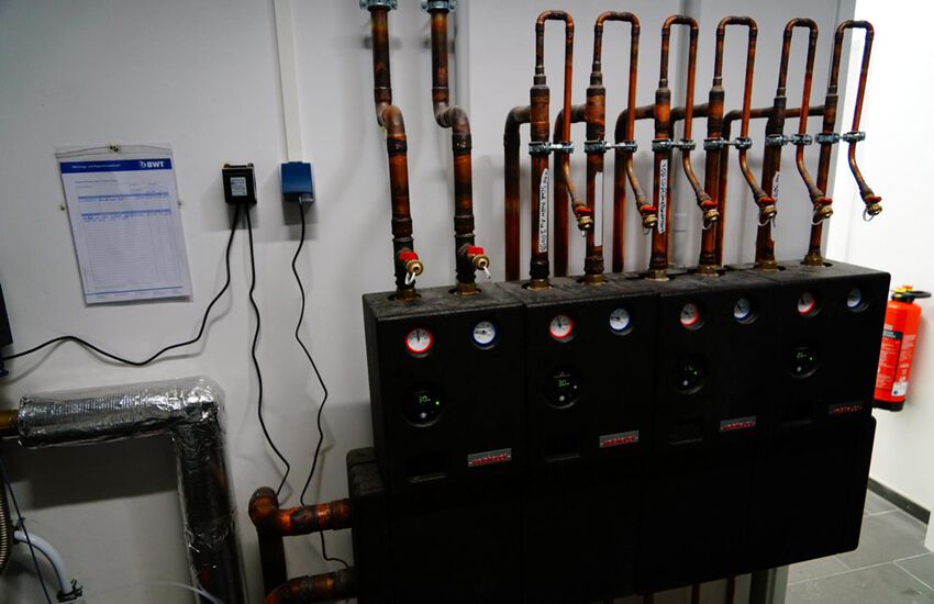 - Einbau von zwei Gasbrennwertgeräten für die Büroflächen, Leistung 60 kW und 32 kW, Fabrikat: Weishaupt