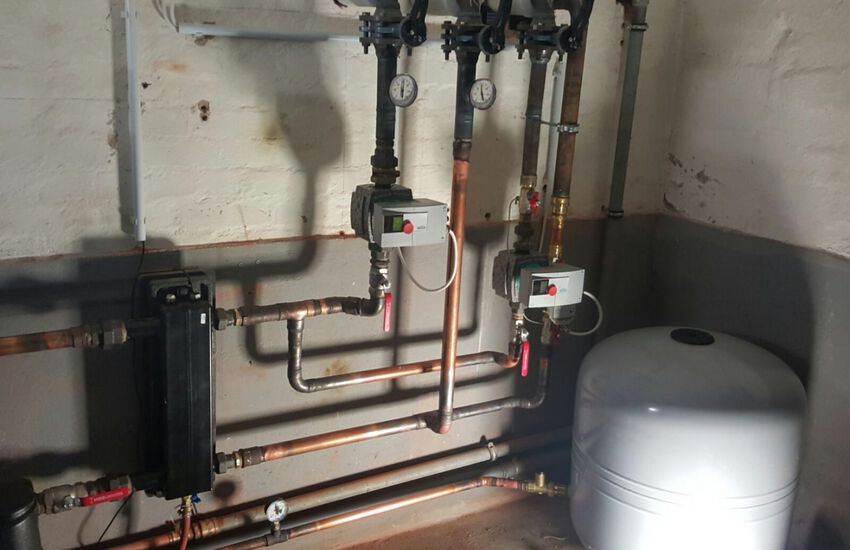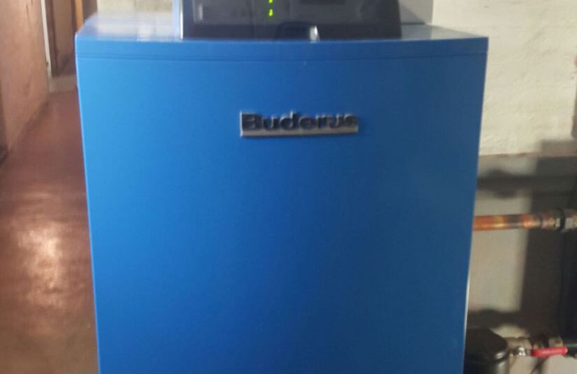 Einbau eines bodenstehenden Gas-Brennwertgerätes, Buderus 60 kW mit Warmwasserbereitung 400 Liter