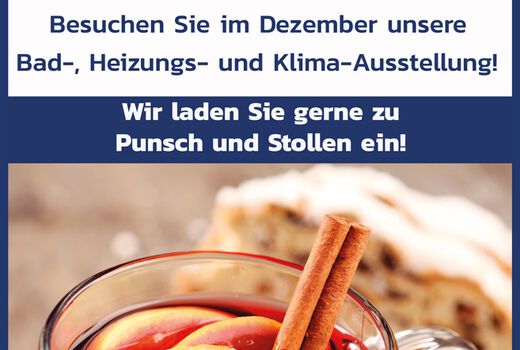 Ab morgen heizen wir Ihnen so richtig ein! Nicht nur, dass unser Adventskalender morgen startet - wir laden Sie den ganzen Dezember lang in unserer Bad- Heizungs- und Klimaausstellung täglich zu Punsch und Stollen ein. Wir freuen uns auf Sie und eine schöne Vorweihnachtszeit!