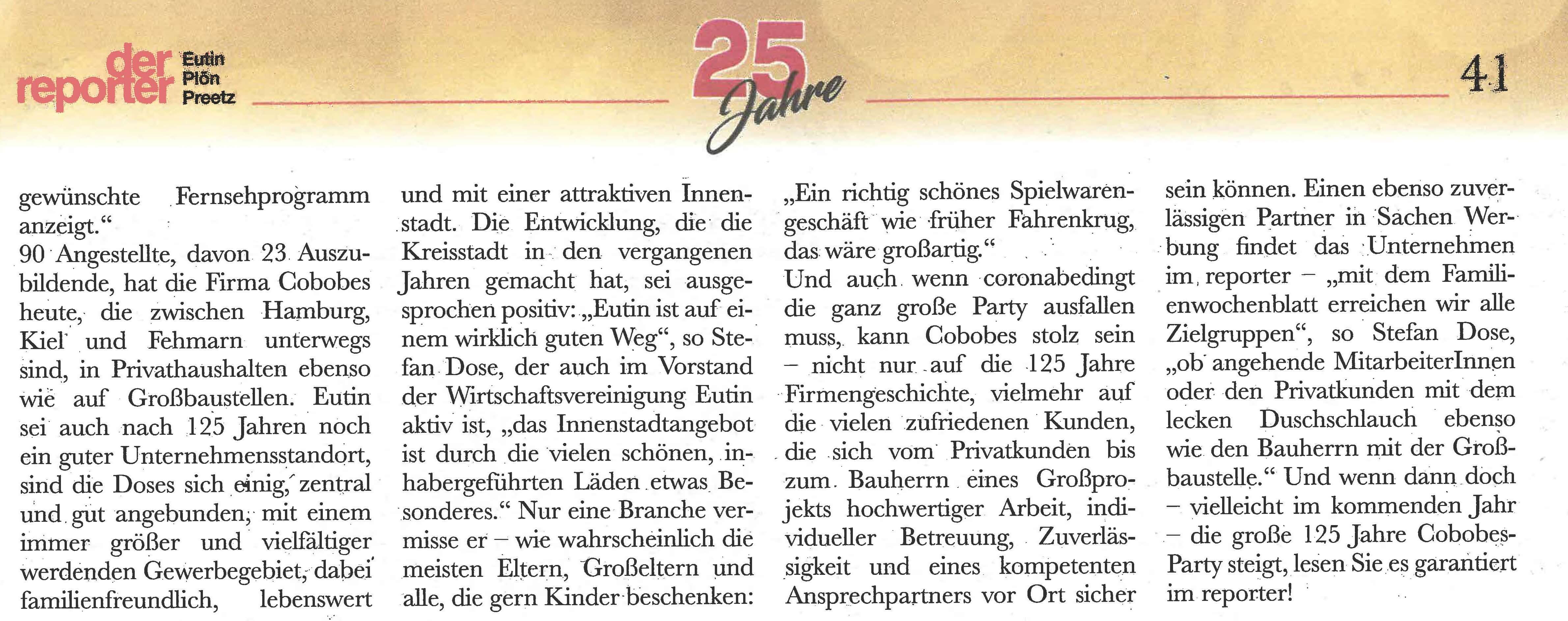 25 Jahre Reporter meets 125 Jahre Cobobes – ein sehr gelungener Bericht