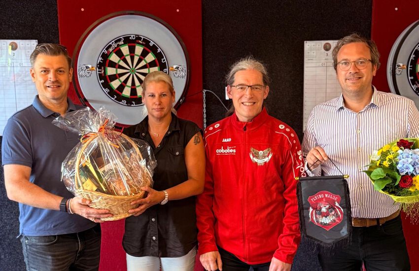Der Abend klang in entspannter Atmosphäre bei einem Kaltgetränk aus. Dabei hatten wir die Gelegenheit, gemeinsam einige Probe-Dartwürfe zu machen und uns auszutauschen. Wir wünschen den "Flying Walde" viel Erfolg bei ihren Turnieren und hoffen, dass unsere Unterstützung einen kleinen Beitrag zum weiteren Vereinsleben leisten kann.