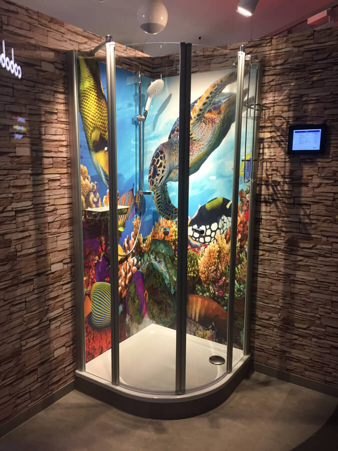 Wir haben unsere Ausstellungskoje 7 für unsere Kunden neu gestaltet. Individualisieren Sie Ihren Duschbereich, Ihr komplettes Bad oder Ihren Wohnbereich mit Ihren eigenen Fotomotiv, mit dem Sie Ihre ganz persönlichen Erinnerungen verbinden. Oder wählen Sie bei unserem Hersteller www.hsk.de aus einer Vielzahl an „HSK Renodeco“ Designvorlagen.