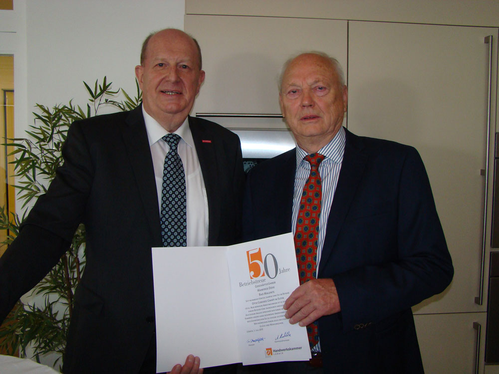 Die Laudatio wurde durch den Kreishandwerksmeister Herrn Ulrich Mietschke fortgesetzt. Herr Mietschke führte aus, dass ein fünfzigjähriges Arbeitsjubiläum heute nur noch sehr selten, eigentlich gar nicht mehr anzutreffen sei.