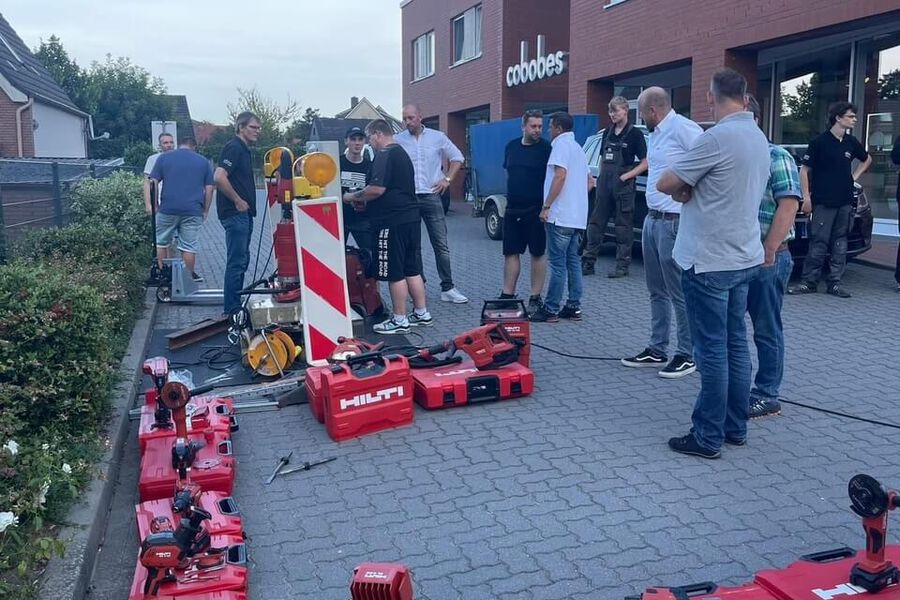 Die Firma Hilti hatte einen Stand aufgebaut, bei dem die neuen Werkzeuge live getestet werden konnten, ausserdem war die Firma Redko mit neuen Arbeitsschuhen und Arbeitskleidung vertreten.