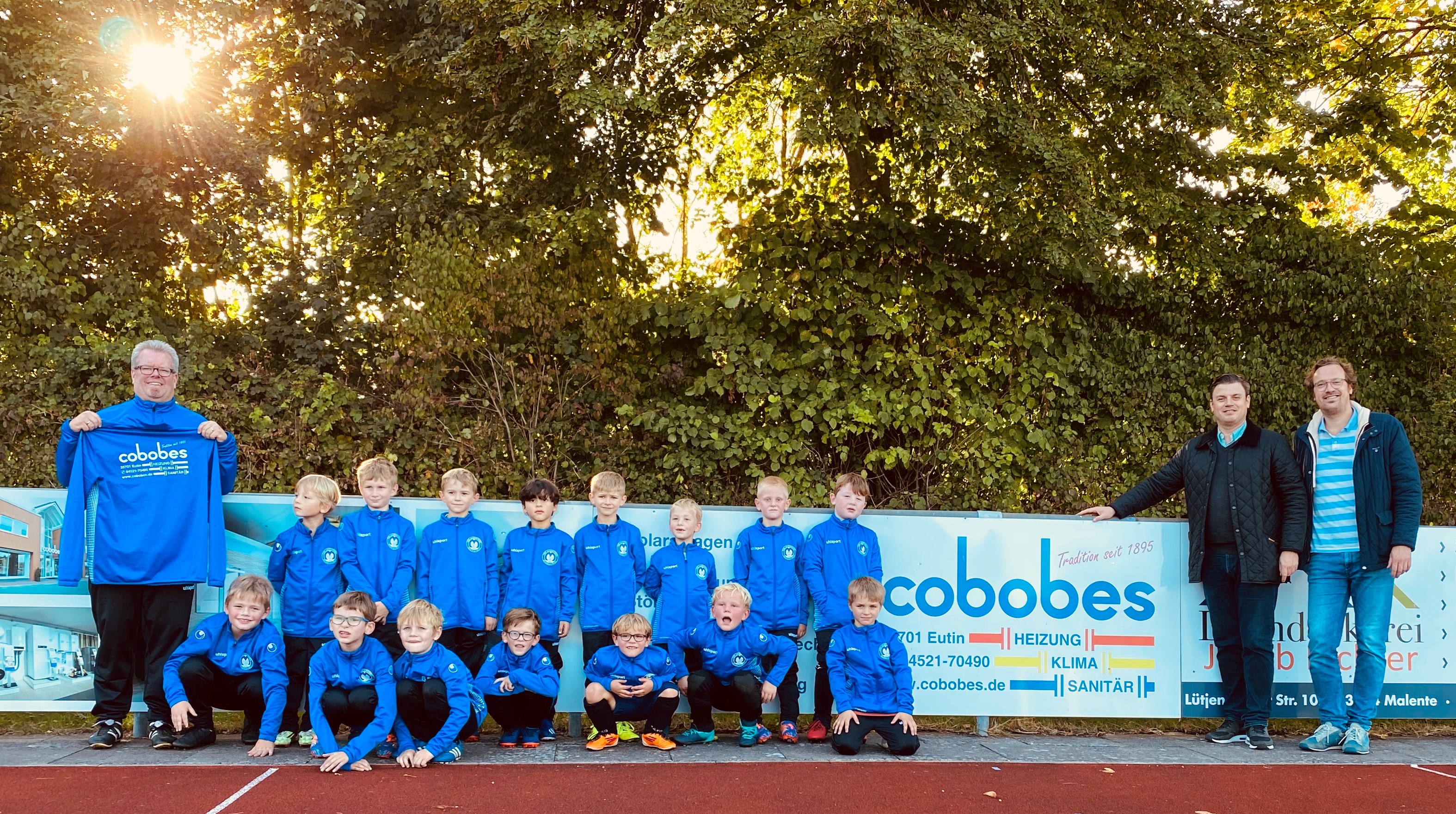 „Wir sind froh und glücklich das wir mit der Firma Cobobes, auch in Corona Zeiten, einen tollen Sponsor haben, der so was möglich macht. Vielen Dank an Stefan Dose und Sebastian Dose“ bedankte sich Maik Kretzer nach der Übergabe. Die Mannschaft besteht aus dem jungen Jahrgang 2013 und sogar einigen 2014, die noch in der G-Jgd. spielen könnten. „Wir gehen das Abenteuer an und die Jungs freuen sich auf ihre erste Saison auf dem „großen Feld““.