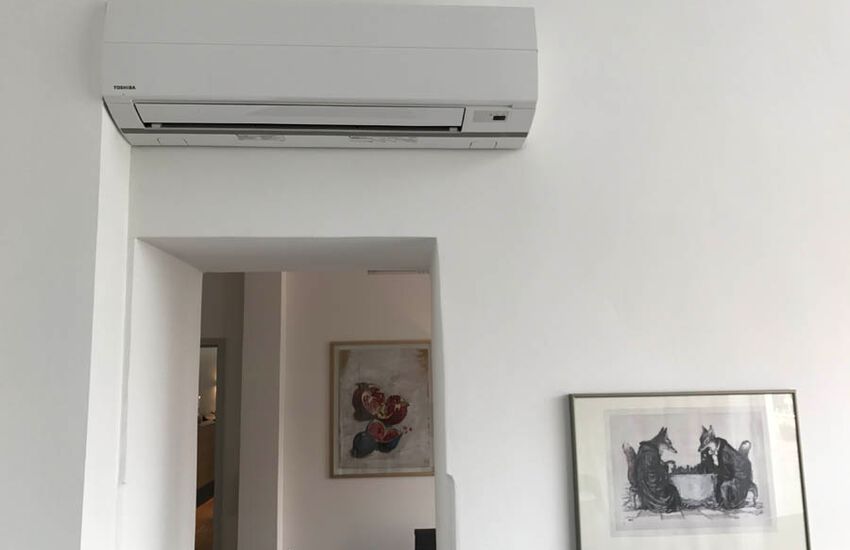 Einbau einer Klimaanlage bestehend aus drei Wandgeräten und einer Klimakassette, Kühlleistung: 14 kW