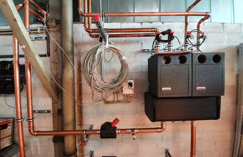 Einbau eines bodenstehenden Gasbrennwertkessels, Fabrikat: Weishaupt