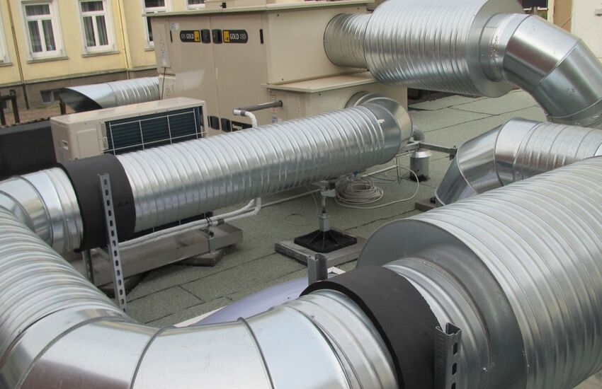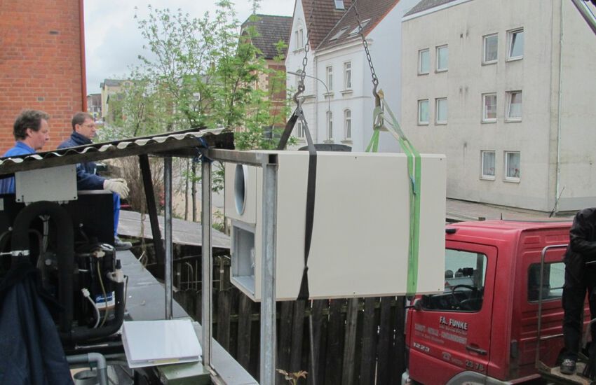 - 3 Stück Multisplitklimaanlagen mit Gesamtkühlleistung von 70 kW angebunden an Kassetten, Kanalgerät mit Textilschlauch, Unterdeckengerät, Wandgeräte und Truhen