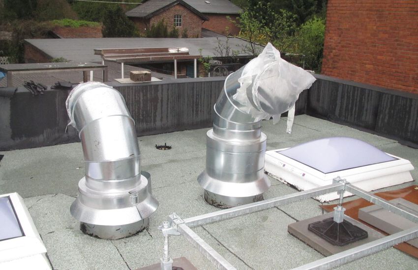 - Lüftungsanlage mit Kreuzstromwärmetauscher mit 2000 m³/h und Zu- und Abluftnetz mit Auslässen