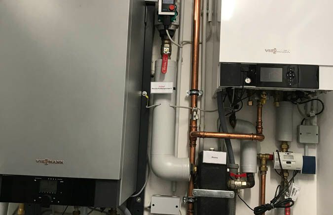 - Einbau eines Gasbrennwertgerätes und eines Stirling Mikro-BHKWs, Fabrikat: Viessmann