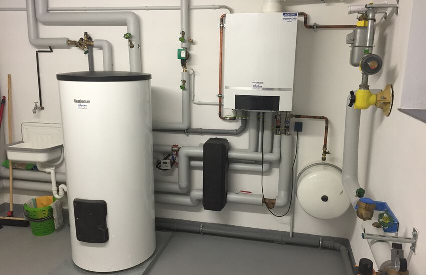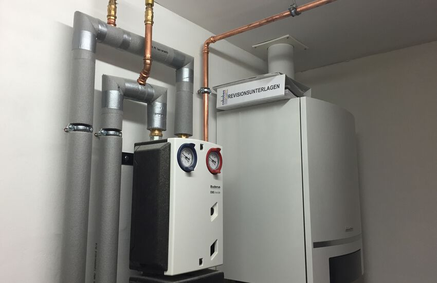 - Wandhängendes Gasbrennwertgerät 35 kW mit nebengestellten Warmwasserbereiter 300 Liter