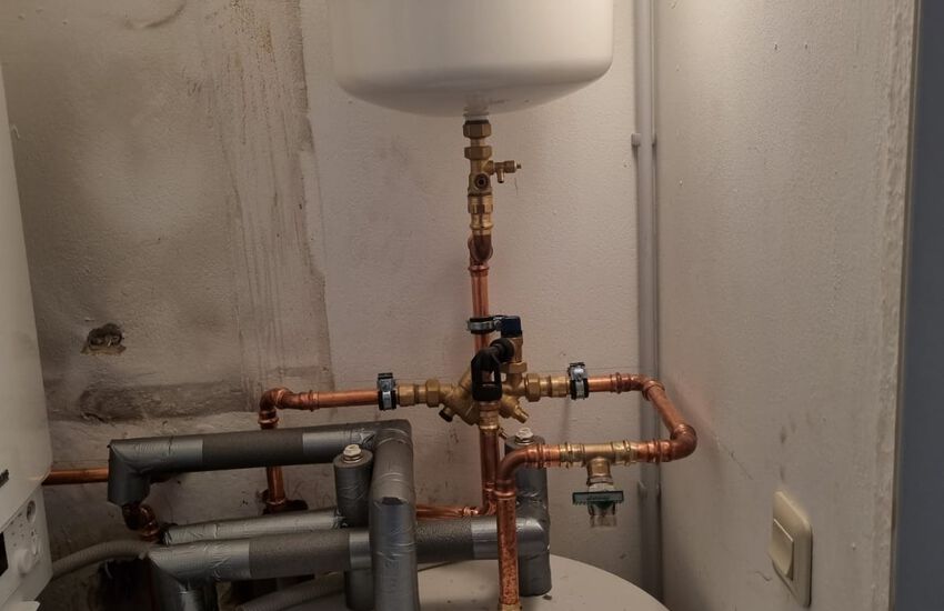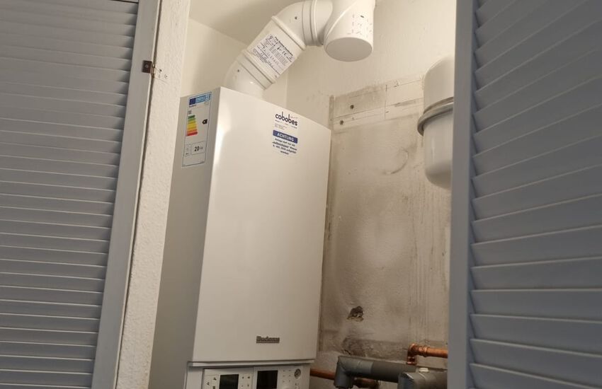 Einbau eines Gasbrennwertgerätes mit nebengestellten Warmwasserbereiter, Fabrikat: Buderus