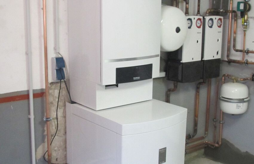 Buderus Gas-Brennwertgerät, Leistung: 25,0 kW mit untergestellten Warmwasserbereiter 135 Liter