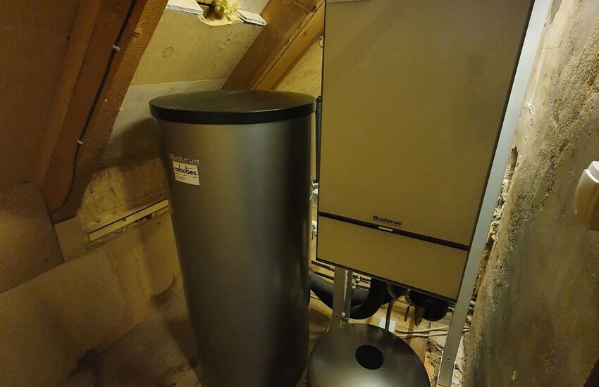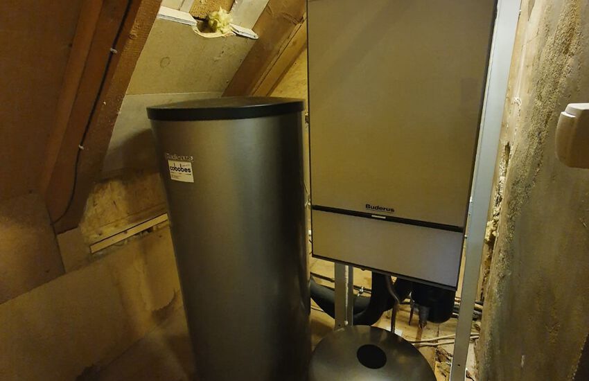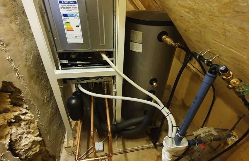 Einbau eines wandhängenden Gasbrennwertkessels mit nebengestellten Warmwasserbereiter