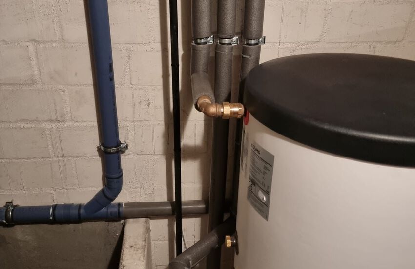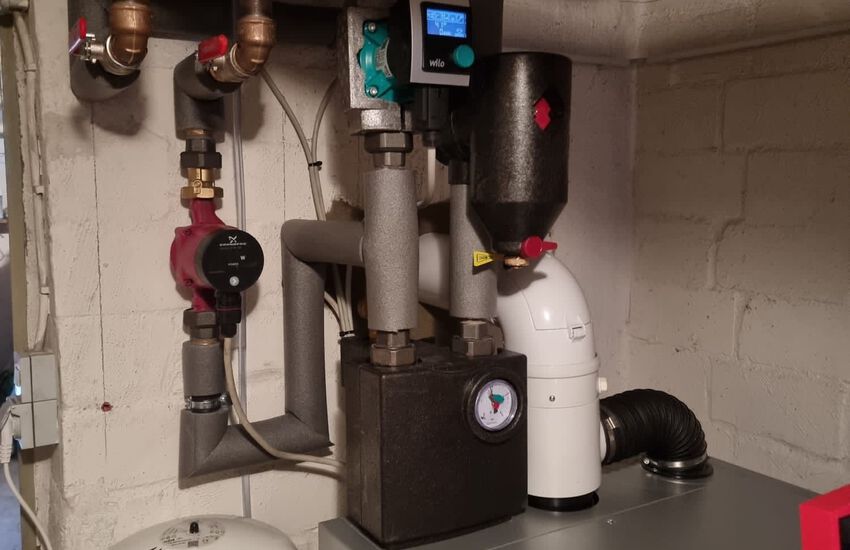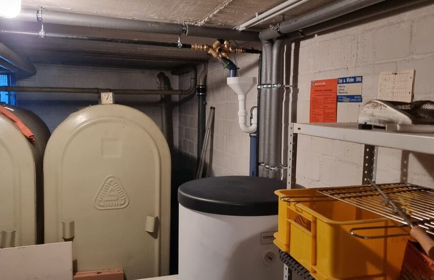 Einbau eines bodenstehenden Ölbrennwerkessels mit nebengestellten Warmwasserbereiter