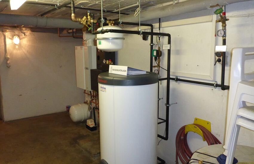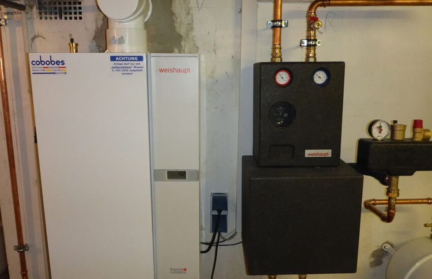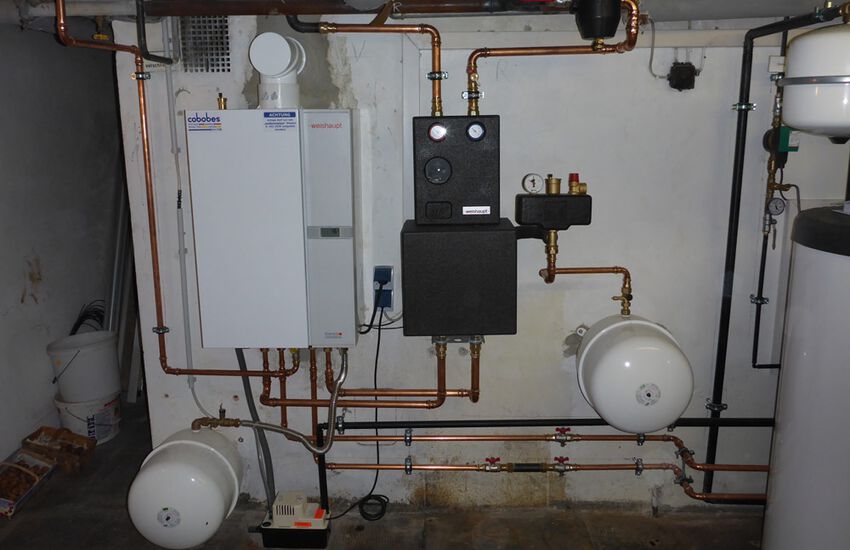 - Einbau eines Gasbrennwertgerätes mit nebengestelltem Warmwasserbereiter, Fabrikat: Weishaupt