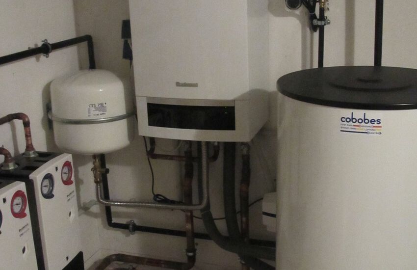 - Buderus Gas-Brennwertgerät, Leistung: 20,0 kW mit nebengestellten Warmwasserbereiter 160 Liter