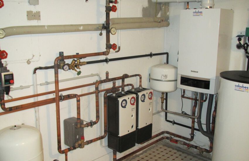 - Systemtrennung mit Plattenwärmetauscher für Fußbodenheizung