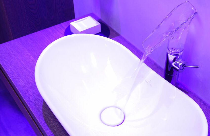 - Einbau einer Waschtischanlage, Fabrikat: Floor and Furniture mit Aufsatzwaschbecken Villeroy Boch und Hansgrohe Armatur mit Tornadoflush