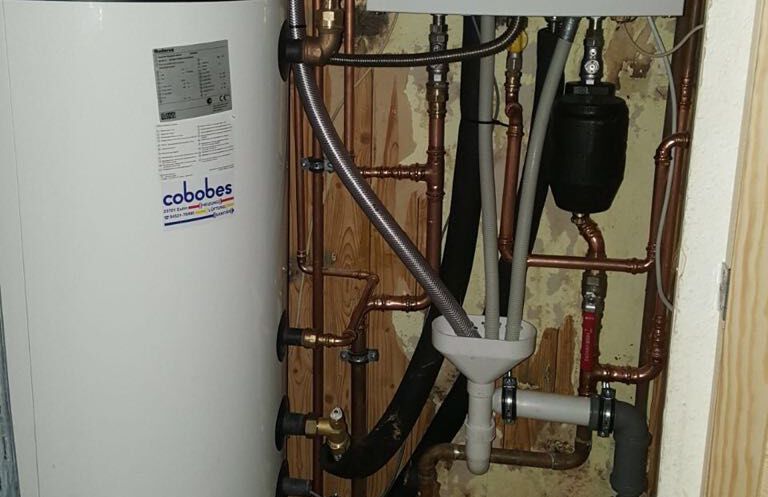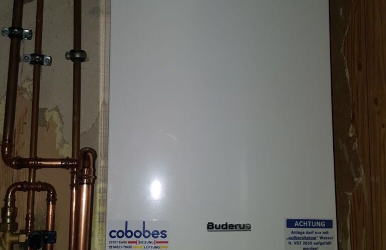 Einbau eines Gasbrennwertgerätes mit nebengestelltem Warmwasserbereiter, Fabrikat: Buderus
