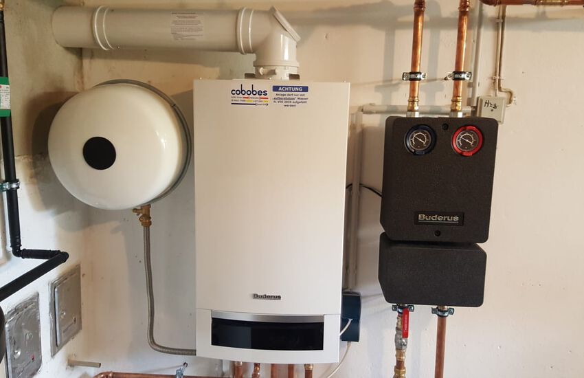 - Einbau eines Gasbrennwertgerätes mit nebengestellter Warmwasserbereitung, Fabrikat: Buderus