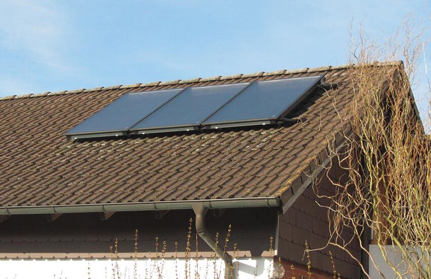 3 Flachkollektoren zur Unterstützung der Warmwasserbereitung mit Solarstation