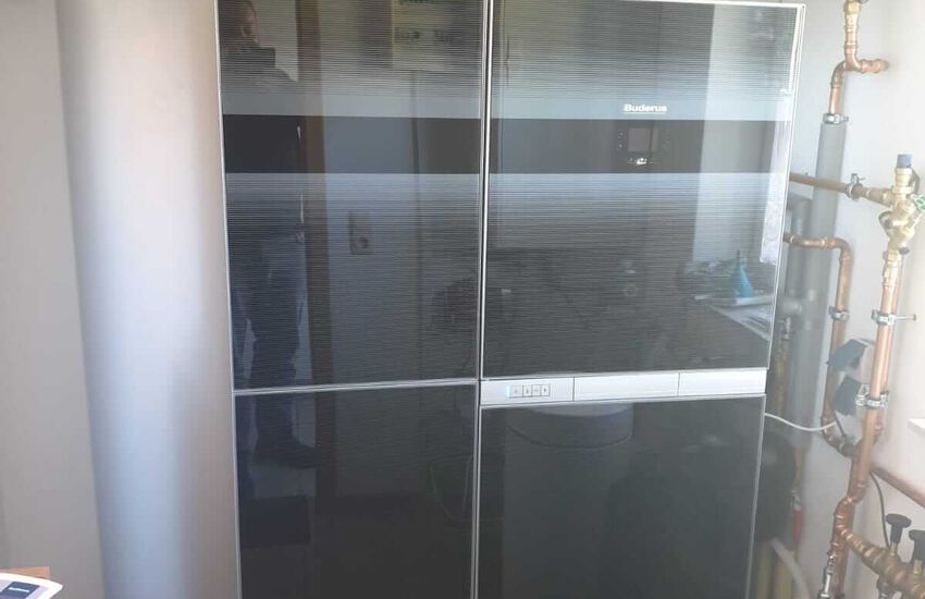 - Buderus Hybridanlage bestehend aus Gasbrennwertgerät und Solaranlage zur Heizungsunterstützung in iPhone Optik