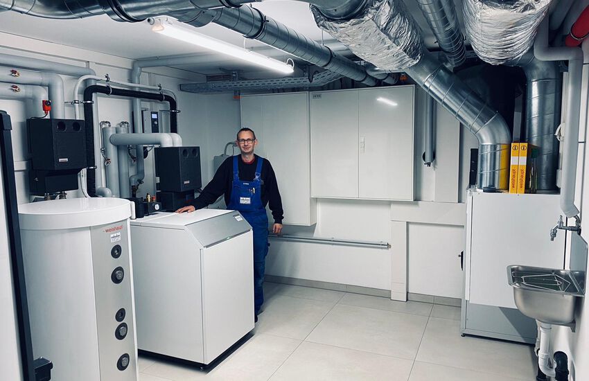 Einbau einer Luft-Wasser-Wärmepumpe, Fabrikat: Weishaupt