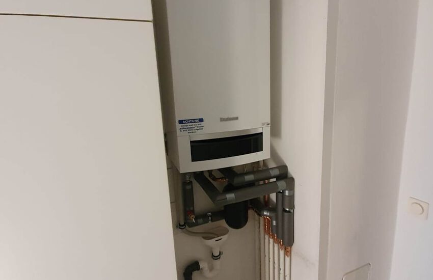 Einbau eines Gasbrennwertgerätes mit nebengestellten Warmwasserbereiter