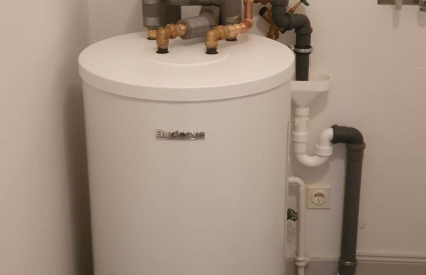 Einbau eines Gasbrennwertgerätes mit nebengestellten Warmwasserbereiter