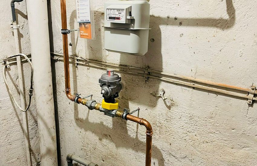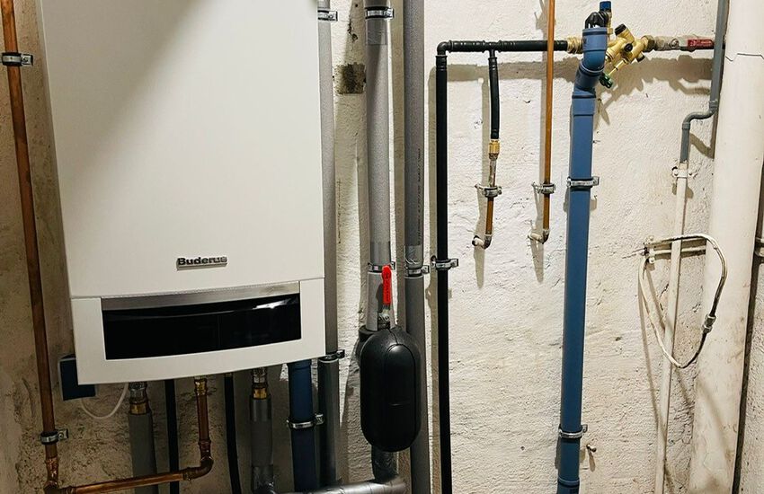 Einbau eines wandhängenden Gasbrennwertgerätes mit Warmwasser im Durchlaufprinzip, Fabrikat: Buderus