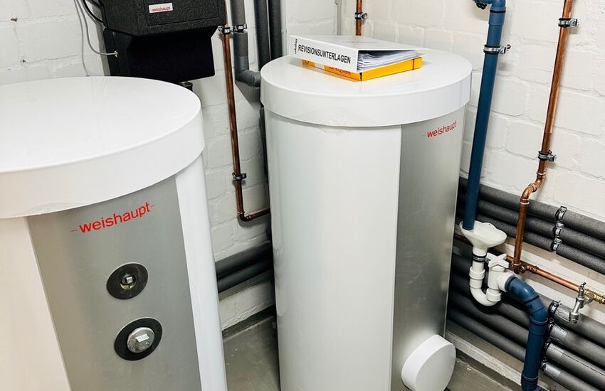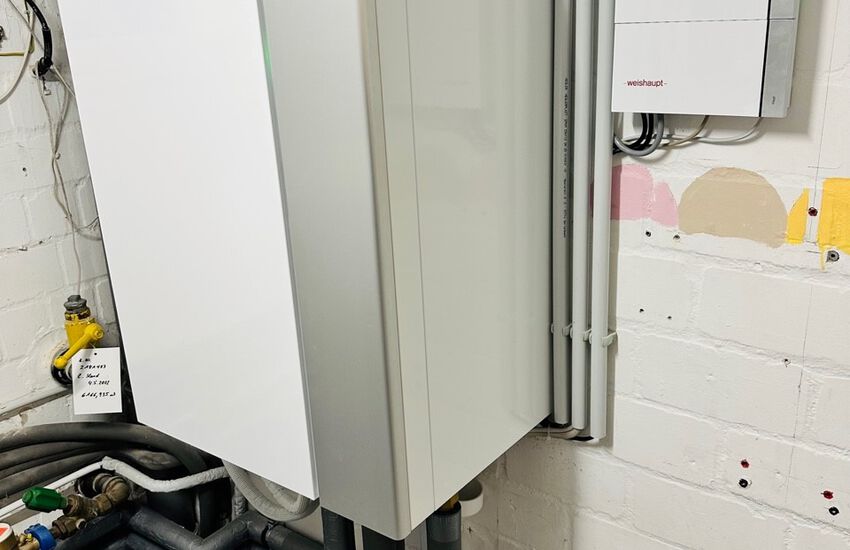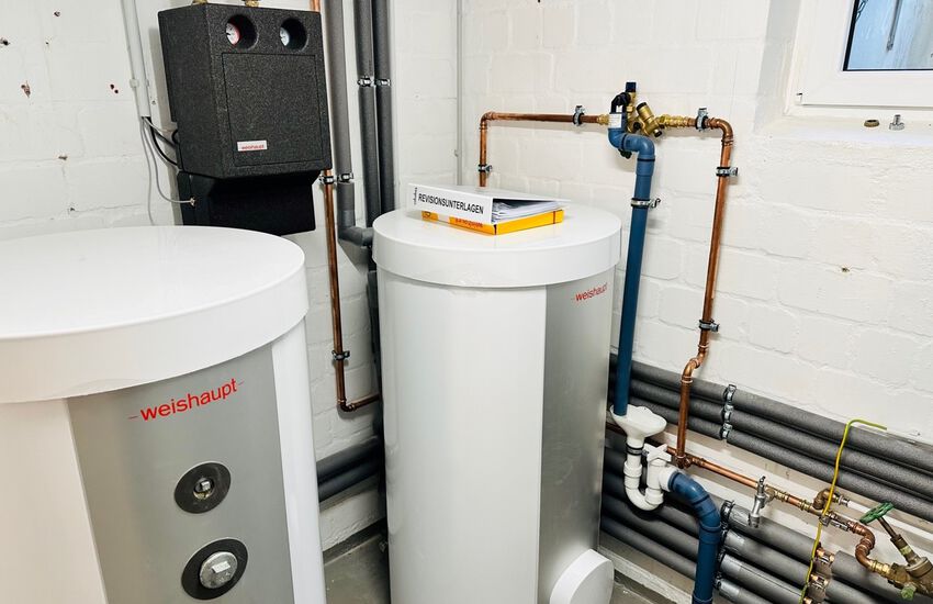 Einbau einer Split-Wärmepumpe für die Gebäudebeheizung, Fabrikat: Weishaupt