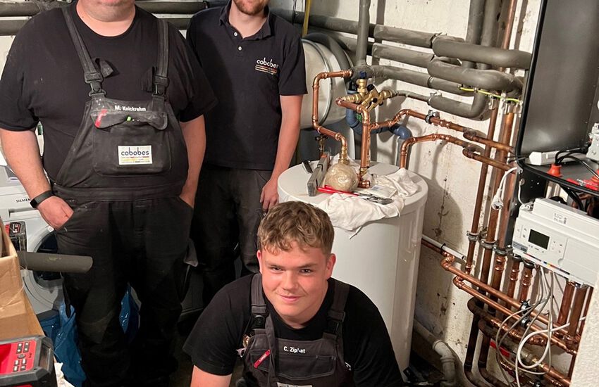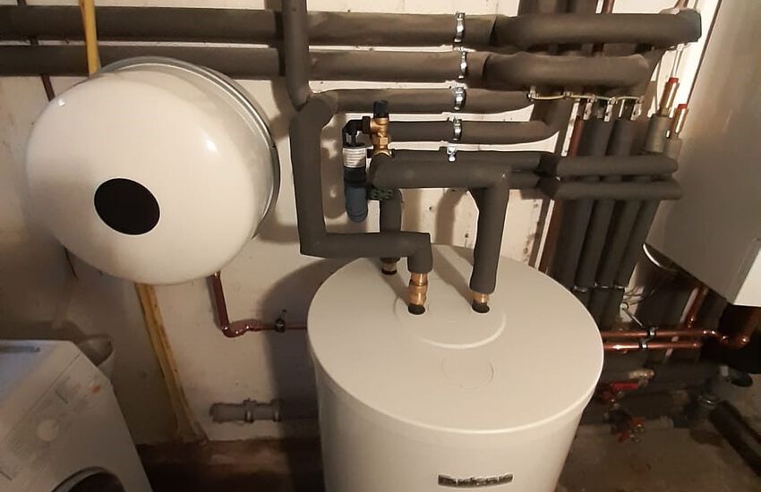 Einbau einer Gasbrennwertanlage mit nebengestellten Warmwasserbereiter, Fabrikat: Buderus