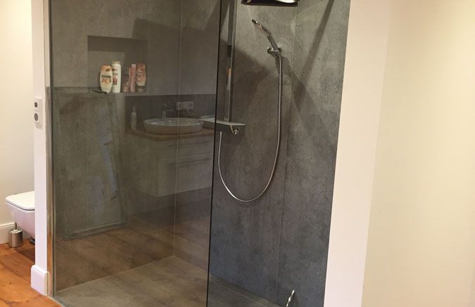 superflache XXL-Walk In Dusche