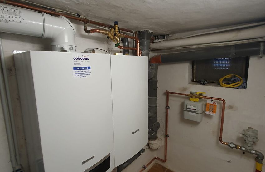 Einbau einer Gasbrennwertanlage mit nebenhängenden Speicher, Fabrikat: Buderus
