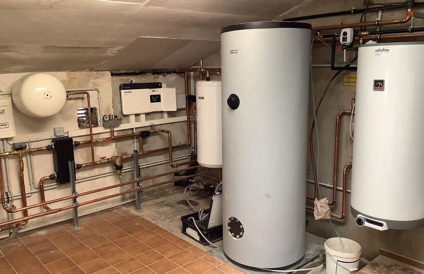 Einbau einer Luft-Wasser-Wärmepumpe mit Brauchwasserspeicher, Fabrikat: NIBE