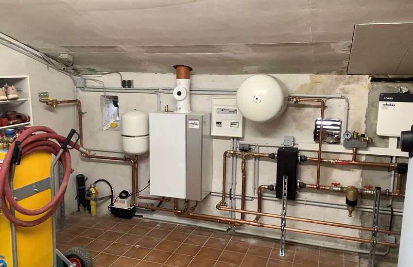Einbau eines Spitzenlastkessels als Gasbrennwertgerät, Fabrikat: Weishaupt