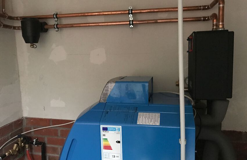 - Einbau eines Ölbrennwertgerätes mit untergestelltem Warmwasserbereiter
