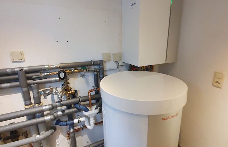 Einbau einer Gasbrennwertanlage mit nebengestellten Warmwasserbereiter, Fabrikat: Weishaupt