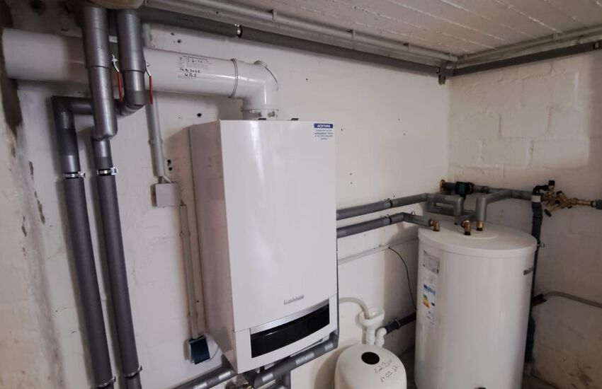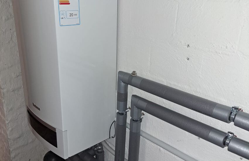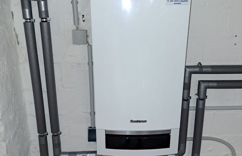 Einbau einer Gasbrennwertanlage mit nebengestellten Warmwasserbereiter, Fabrikat: Buderus