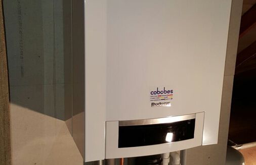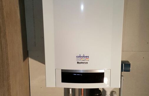 Einbau eines Gasbrennwertgerätes mit integrierter Warmwasserbereitung im Durchlaufprinzip, Fabrikat Buderus