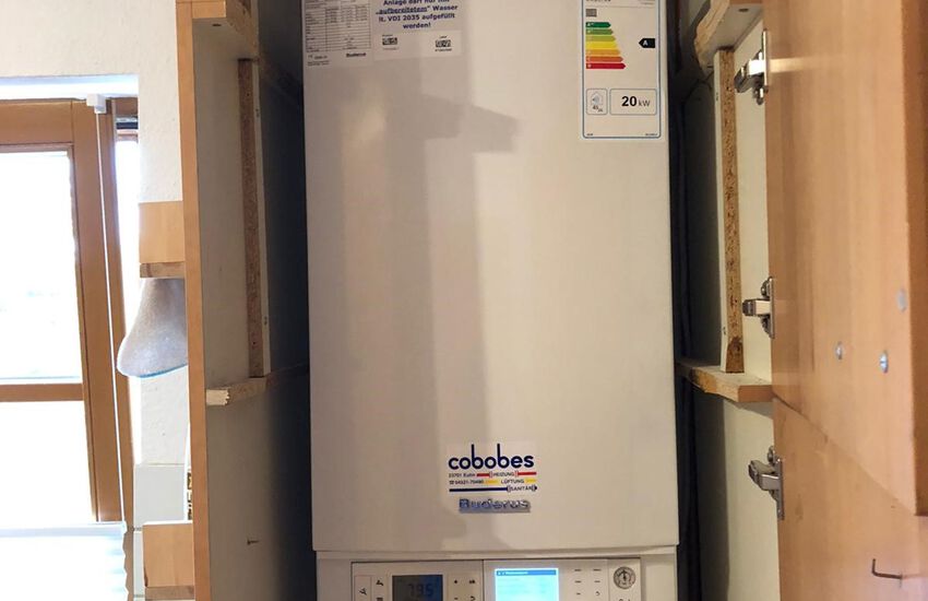 Einbau eines Gasbrennwertgerätes im Erdgeschoss und Warmwasserspeicher im Keller, Fabrikat: Buderus