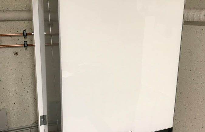 Einbau einer Gasbrennwertanlage mit Warmwasserbereitung, Fabrikat: Buderus mit Glasoptik