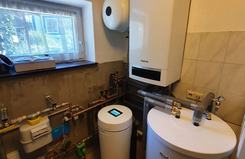 Einbau einer Gasbrennwertanlage mit nebengestellten Warmwasserbereiter, Fabrikat: Buderus