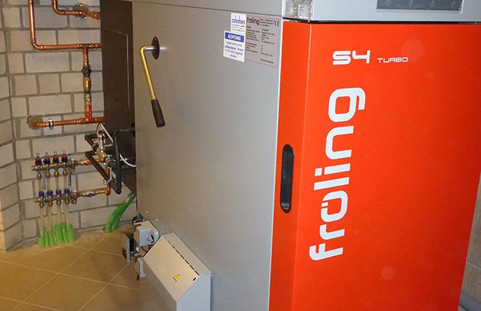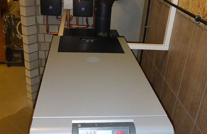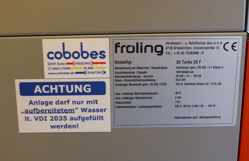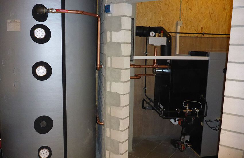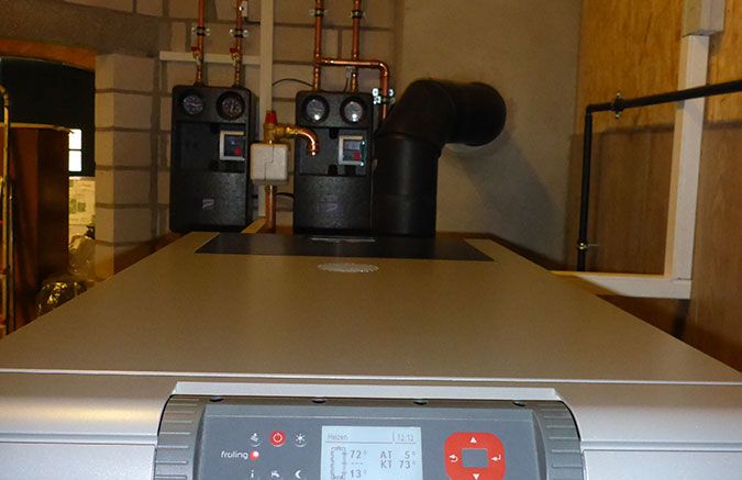 - Einbau eines Scheitholzvergaserkessels mit Heizleistung 28 kW mit Brennwerttauscher und automatischer Zündung