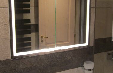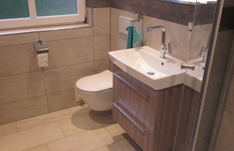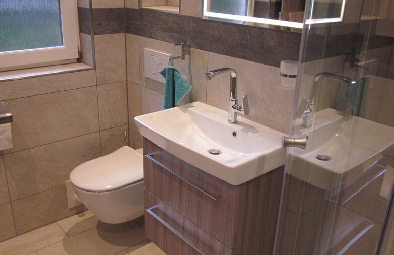 Brausearmatur mit Glasablage und Kopfbrause, Hansgrohe