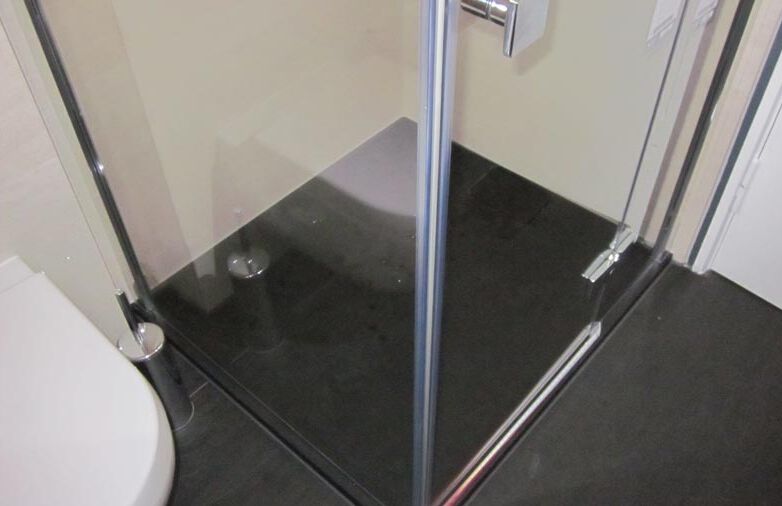 - Einbau einer bodenebenen Duschtasse mit Duschabtrennung, Fabrikat: HSK