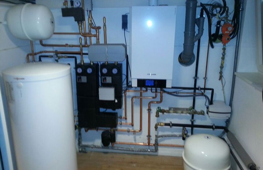 Einbau eines Gasbrennwertgerätes, Fabrikat Viessmann, mit hydraulischer Weiche und 2 Mischkreisen