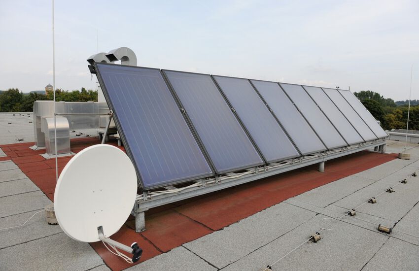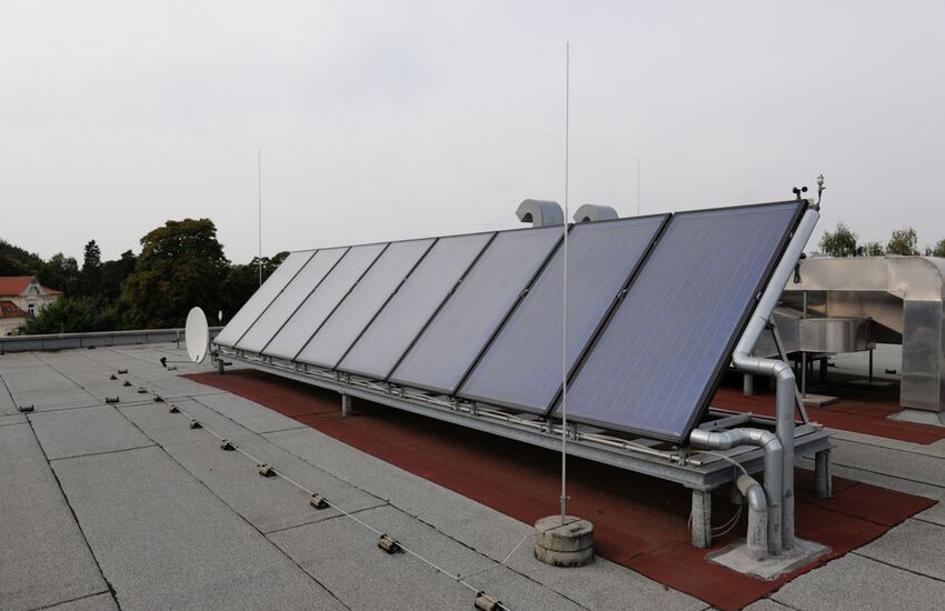 8 Flachkollektoren zur Unterstützung der Trinkwasser- und Heizungsanlage mit Pufferspeicher und Solarstation